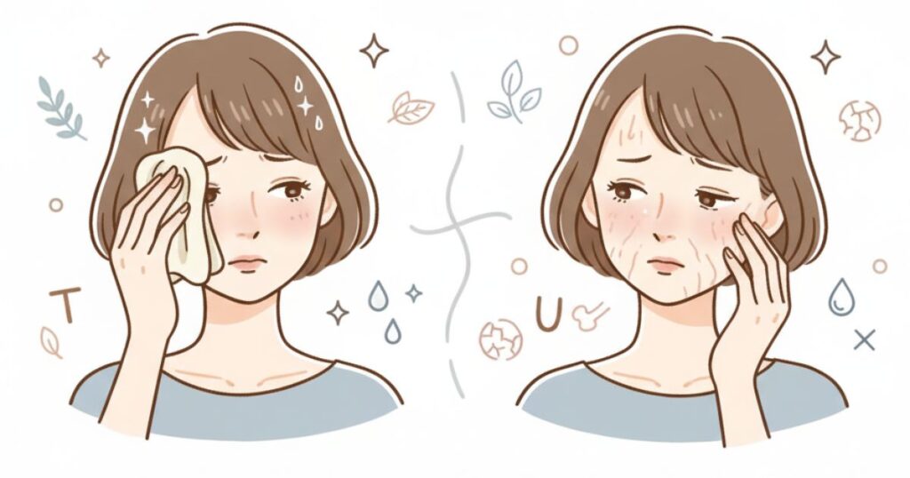 洗顔は一日の汚れや余分な皮脂を落とす大切なステップですが、やり方を間違えると乾燥と皮脂の両方を悪化させてしまいます。強すぎる洗顔はバリア機能を壊し、逆に皮脂の過剰分泌を招き、混合肌をさらに不安定にするのです。
