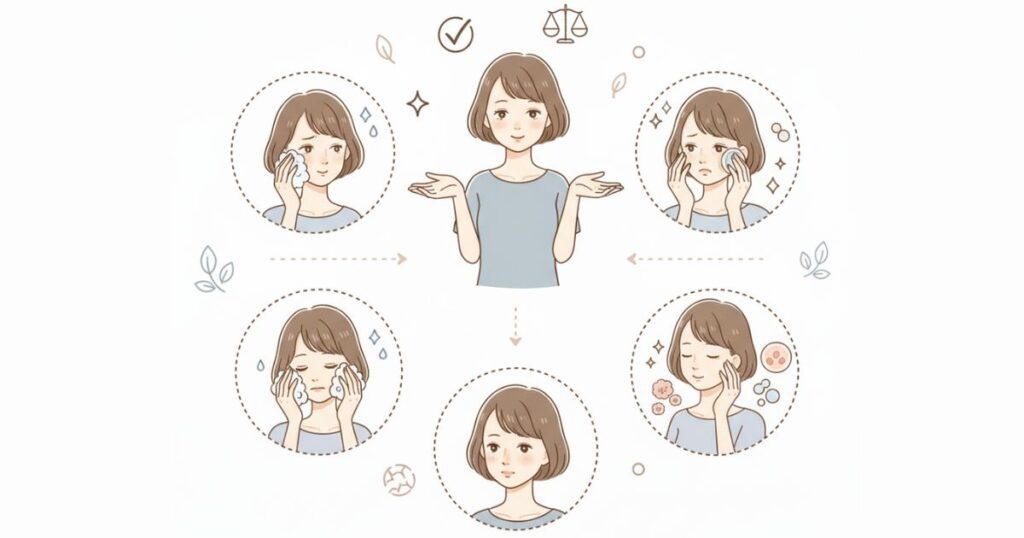 「皮脂を落としすぎない」「乾燥部分はしっかり潤す」――これが混合肌ケアの鉄則です。