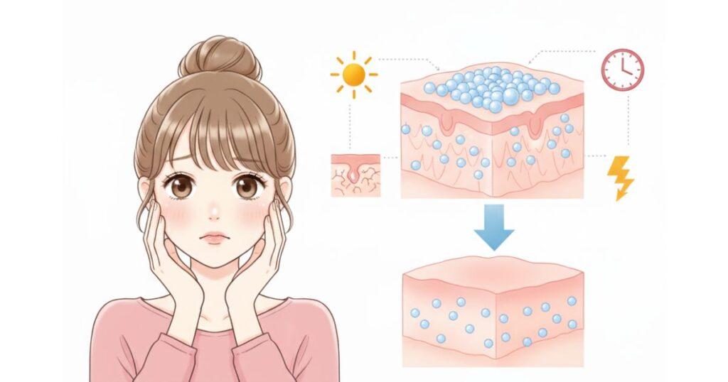それは気のせいではなく、あなたの肌の中で“静かに進むヒアルロン酸の減少”が原因かもしれません。