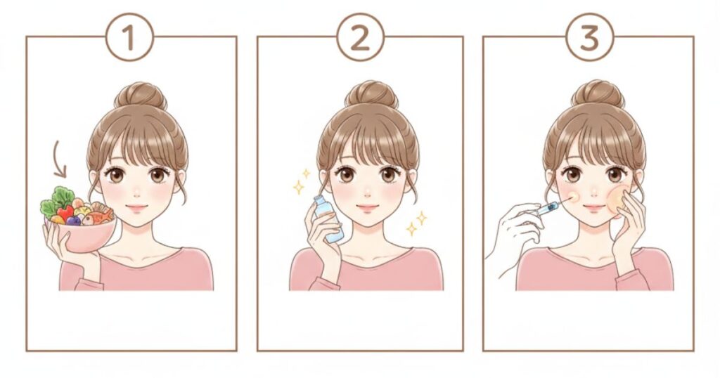 食事・スキンケア・美容医療を自分のライフスタイルや予算に合わせて選び、科学的根拠のある方法で続けること──それが10年後も「ふっくら透明感のある肌」でいるための最短ルートです。
