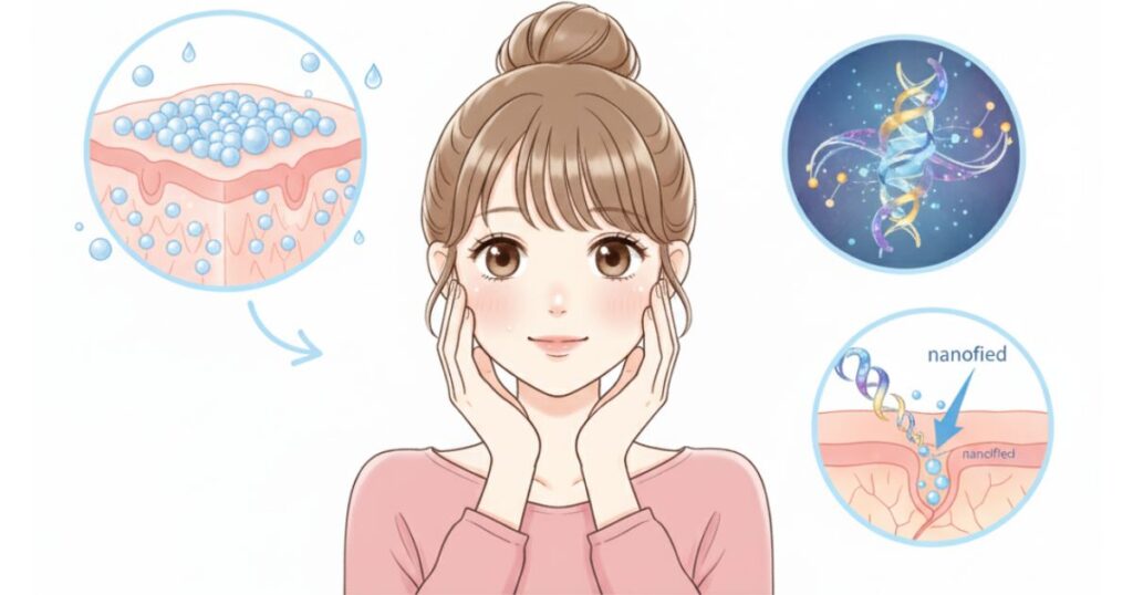 分子を極限まで小さくすることで、角質層への浸透性を高めた「ナノ化ヒアルロン酸」が注目されています。