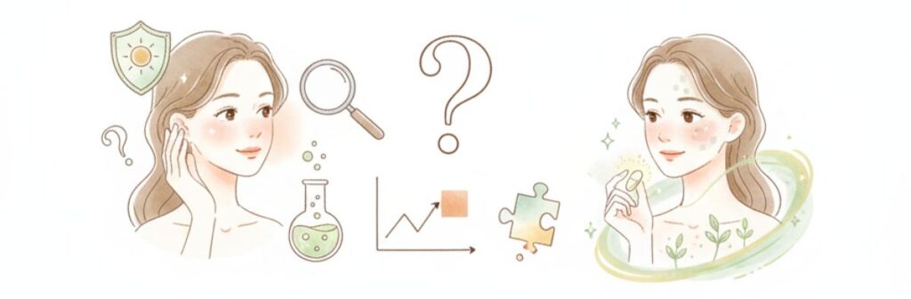 このブログでは、科学的な裏付けと実体験に基づいた「肌を育てるための習慣」をわかりやすくお届けしています。