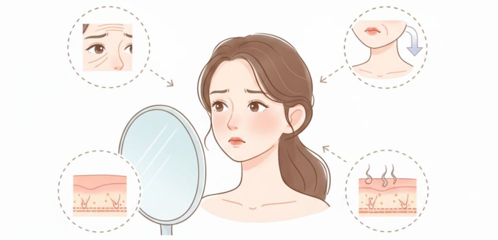 「なんとなく老けて見える…」と感じるとき、それは具体的な変化が起きているからです。