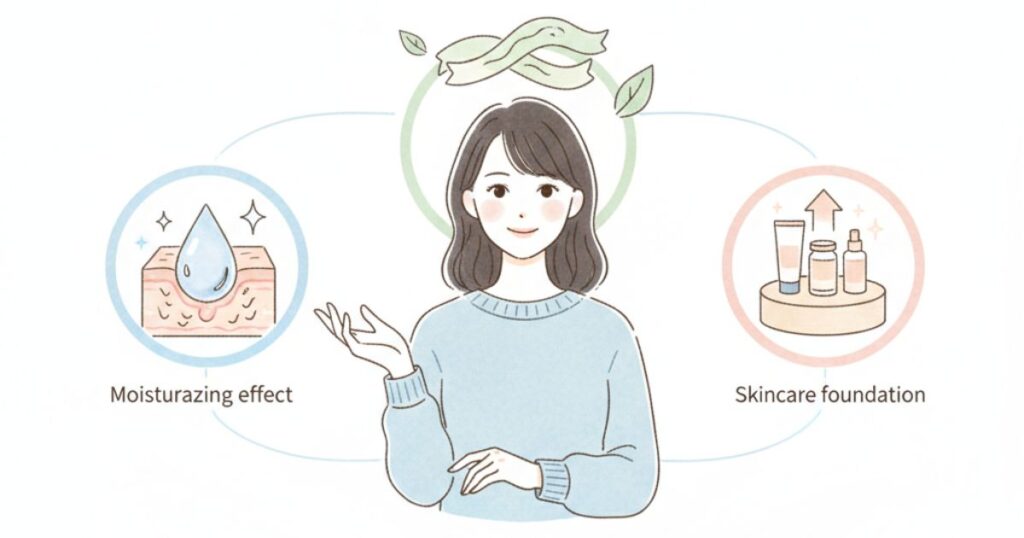• 保湿効果:角質層に水分を補給し、乾燥を防ぐ