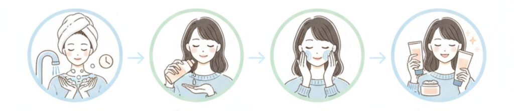 • スキンケアの土台作り:その後に使うアイテムの効果を引き出す