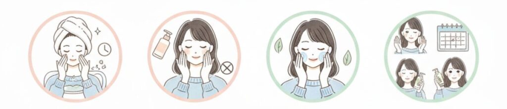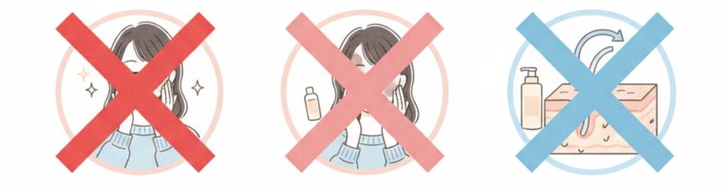 💡 NG行動:「化粧水だけでスキンケア完了」は乾燥悪化の原因になります。