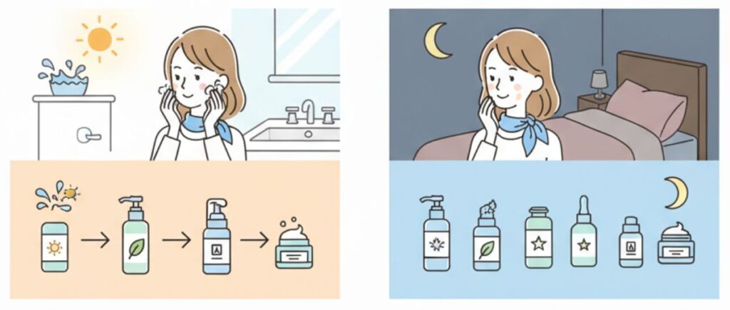 実は、朝と夜で“正しいお手入れ順”を知るだけで、肌の調子は見違えるほど変わります。