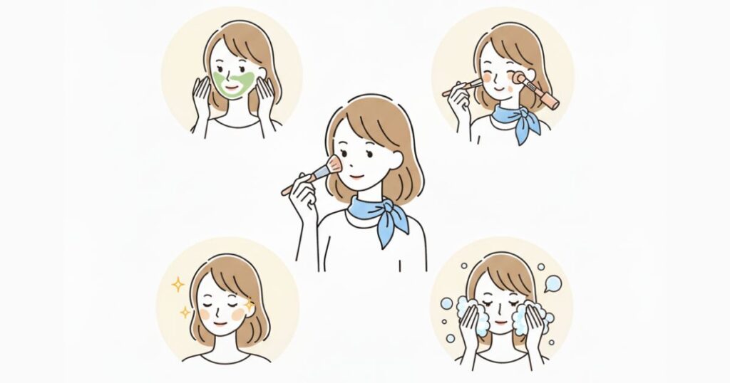 • クレンジング:メイク残りは翌朝の肌トラブルに直結するので丁寧に落とす