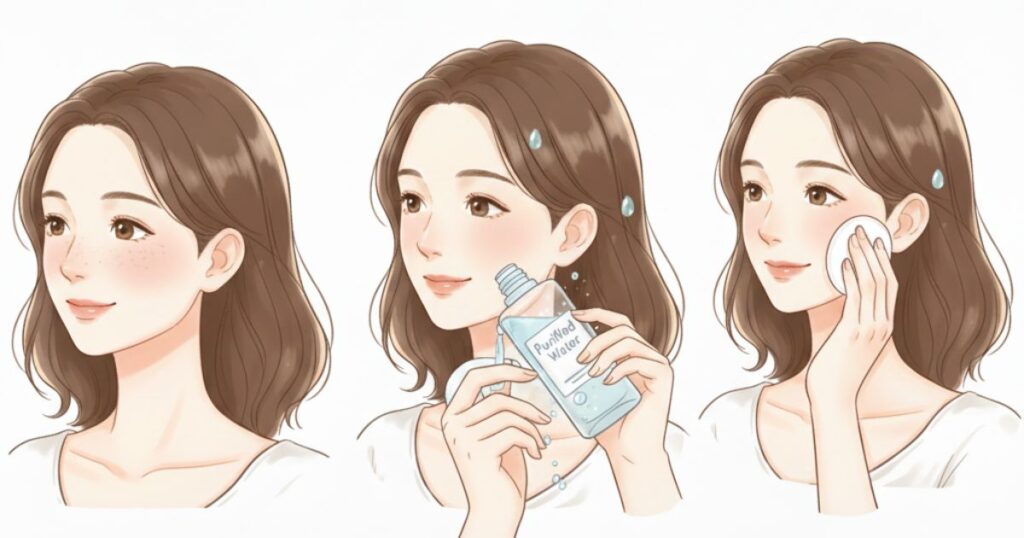 毎日使うよりも、週2〜3回のスペシャルケアとして精製水を取り入れると、肌のバランスが崩れにくくなります。