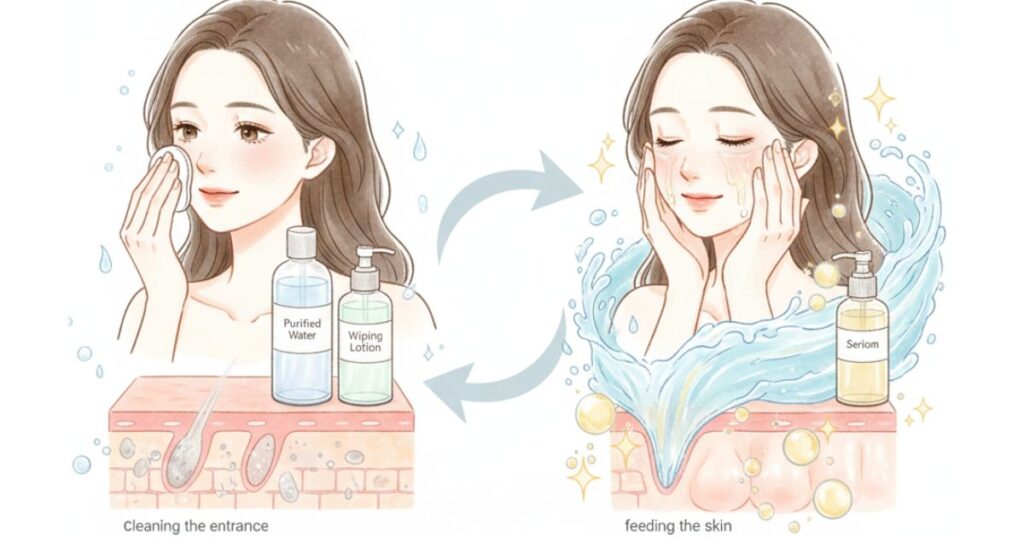 化粧水は“お肌へのごちそう”、精製水は“お肌の掃除係”。この順番や使い方を意識するだけで、透明感やメイクのりがぐんと変わるんです。