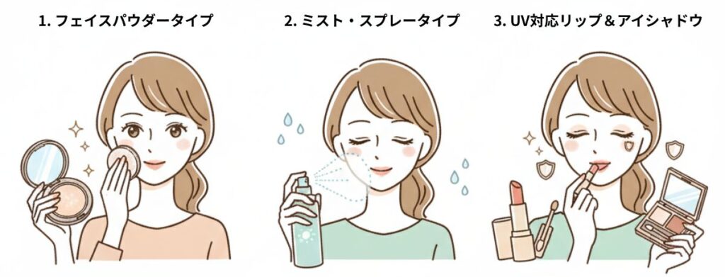 ポーチに「UVパウダー」または「UVミスト」をひとつ入れておきましょう。午後のちょっとした休憩時間に使うだけで、あなたの肌はぐっと明るく、未来の美しさも守られます。