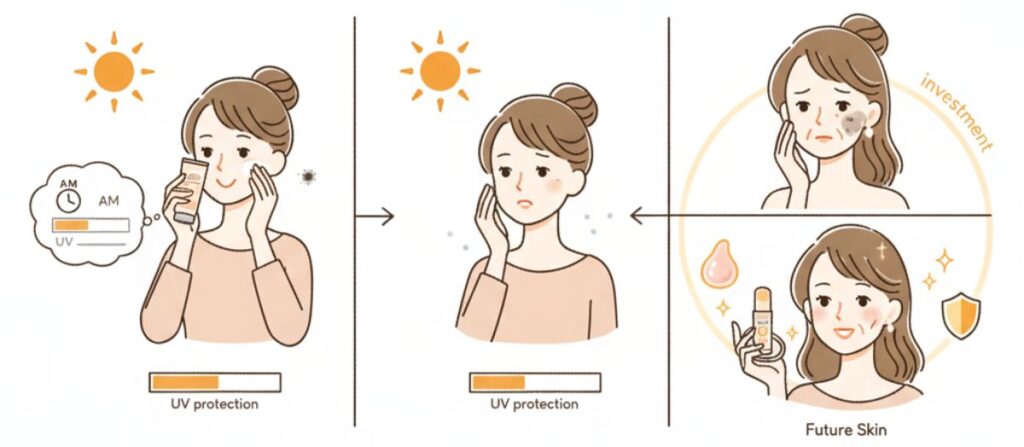 つまり、午後のUVケアは 未来の肌への先行投資。
