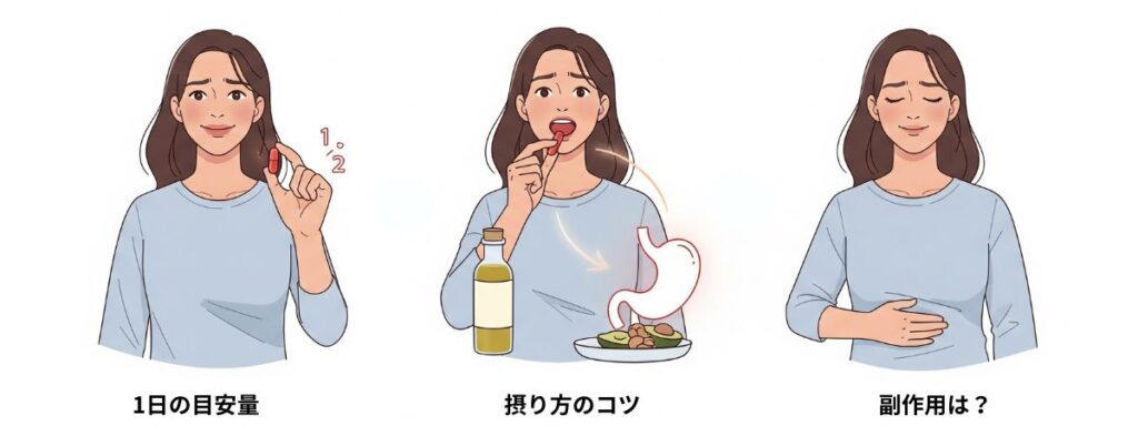 - 摂り方のコツ:脂溶性なので、食後やオイルと一緒に摂ると吸収率がアップします。
